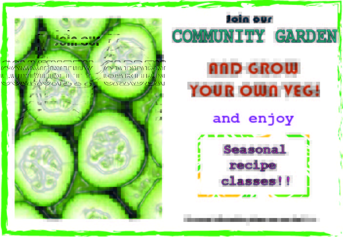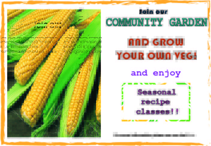Postcard sized handouts to help promote interest in a community garden.